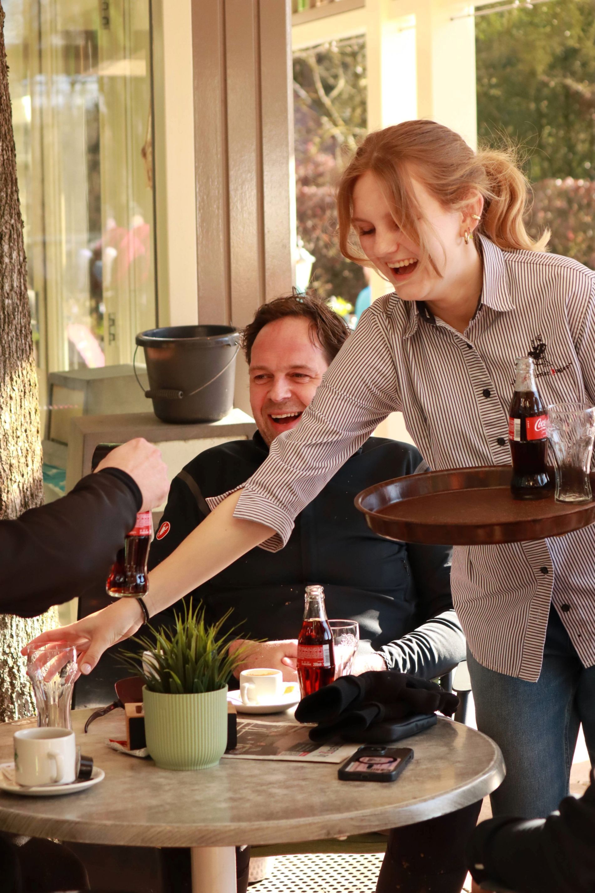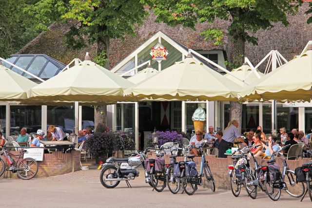 Neben köstlichen Häppchen und Getränken ist De Rustende Jager vor allem für seinen Fahrradverleih bekannt. Hier stehen über 700 Fahrräder zur Auswahl, von gewöhnlichen Fahrrädern und E-Bikes bis hin zu Mountainbikes, Tandems, Elektro-Dreirädern und sogar Elektro-Nebeneinandems. Darüber hinaus ist in diesem rollstuhlgerechten Ausflugslokal wirklich jeder willkommen. Auf der geräumigen Terrasse ist genügend Platz für eine große Anzahl von Gästen, und neben gewöhnlichen Toiletten im Innen- und Außenbereich verfügt diese Raststätte noch über eine barrierefreie Toilette im Innenbereich. Es gibt sechs Duschen, in denen sich sportliche Gäste nach dem Mountainbiken erfrischen können. Aufgrund des meist regen Betriebs in De Rustende Jager sind Reservierungen nur für große Gruppen möglich. Das Personal bleibt jedoch auch in Stresssituationen ausgesprochen gelassen und professionell: „Sehr freundliches Personal, trotz des Andrangs“, so liest man im Gästebuch.