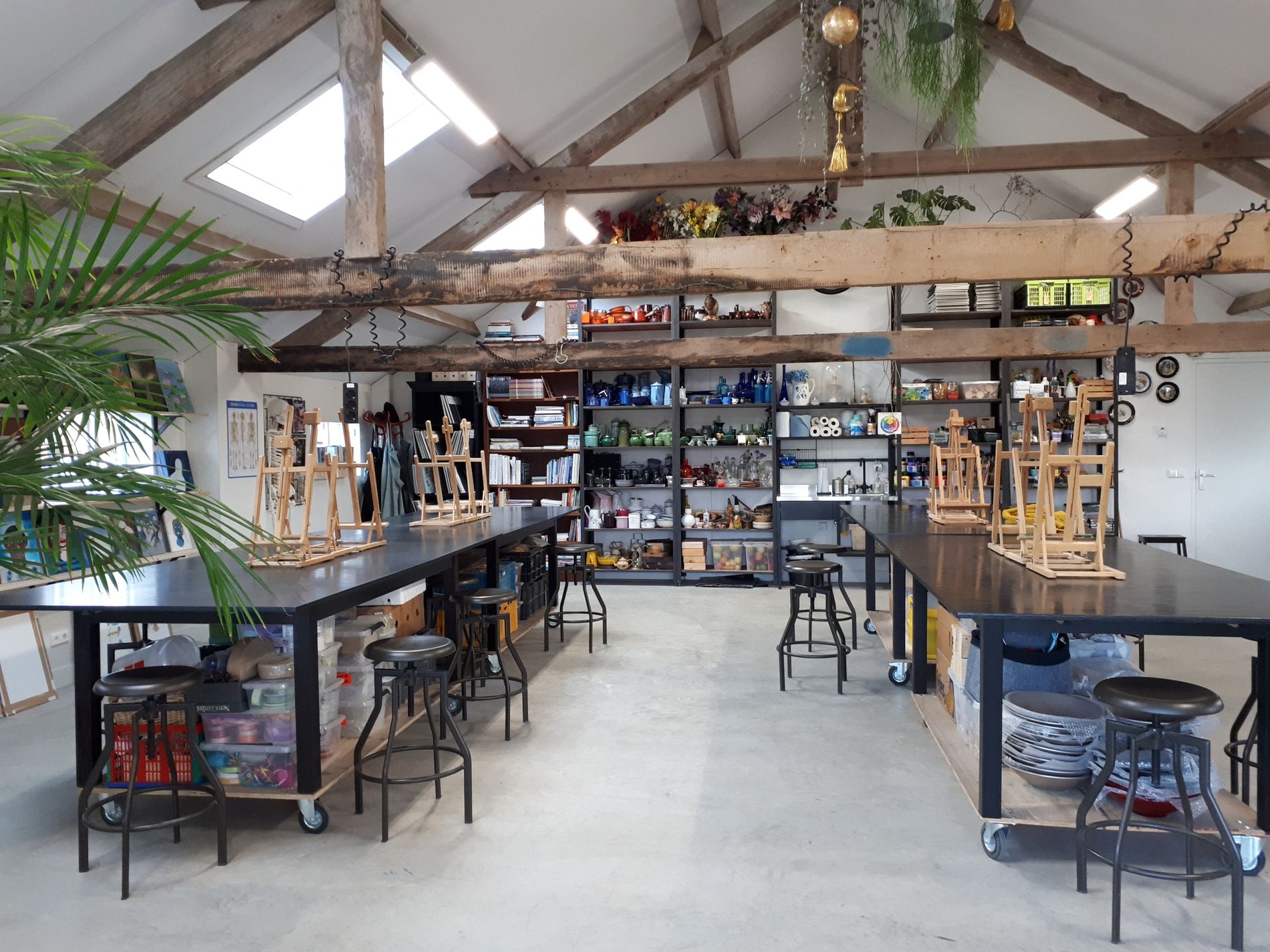 Courses and Workshops: for adults, children, and teenagers. Drawing, painting, flower arranging, bachelorette parties, and baby showers. The Studio is beautifully located in the countryside of Oirschot. The pleasant and atmospherically decorated space is located in an old converted pigsty, has lots of natural light, and is almost 100m2 in size.