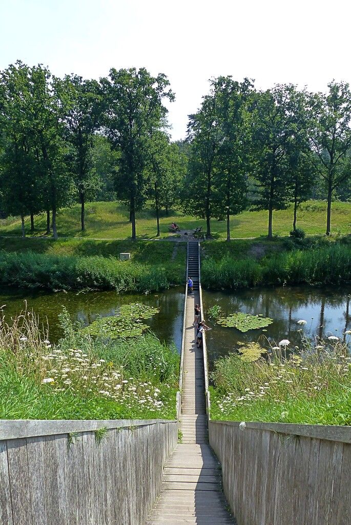 Fort de Roovere is one of the largest forts along the West Brabant Water Defence Line. Its greatest feature is the observation tower Pompejus, not only because of the view at a height of 25 metres but also because the tower itself is a real work of art. Once at the top, you can also see the famous Moses bridge. This trench bridge allows you to walk over the water and still have dry feet!
