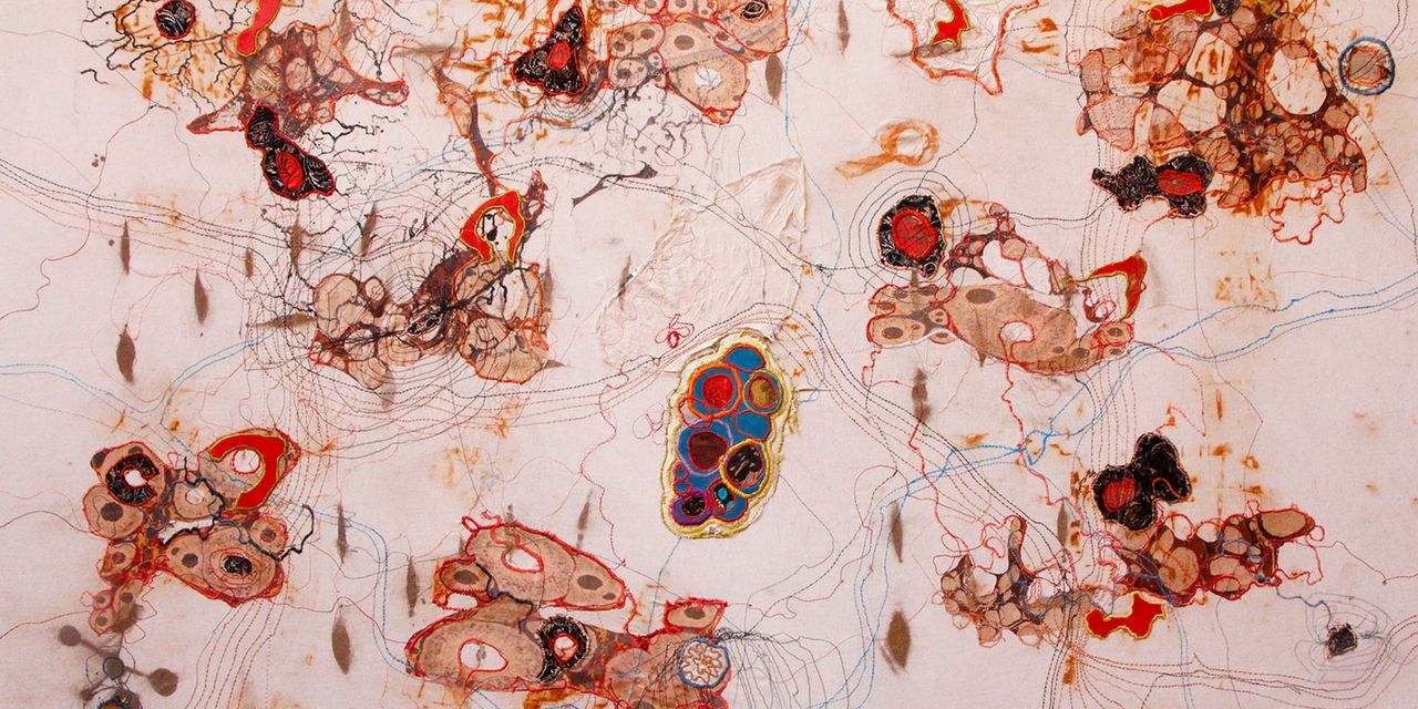 De textielwerken openen een veld van lijnen en knooppunten, al…