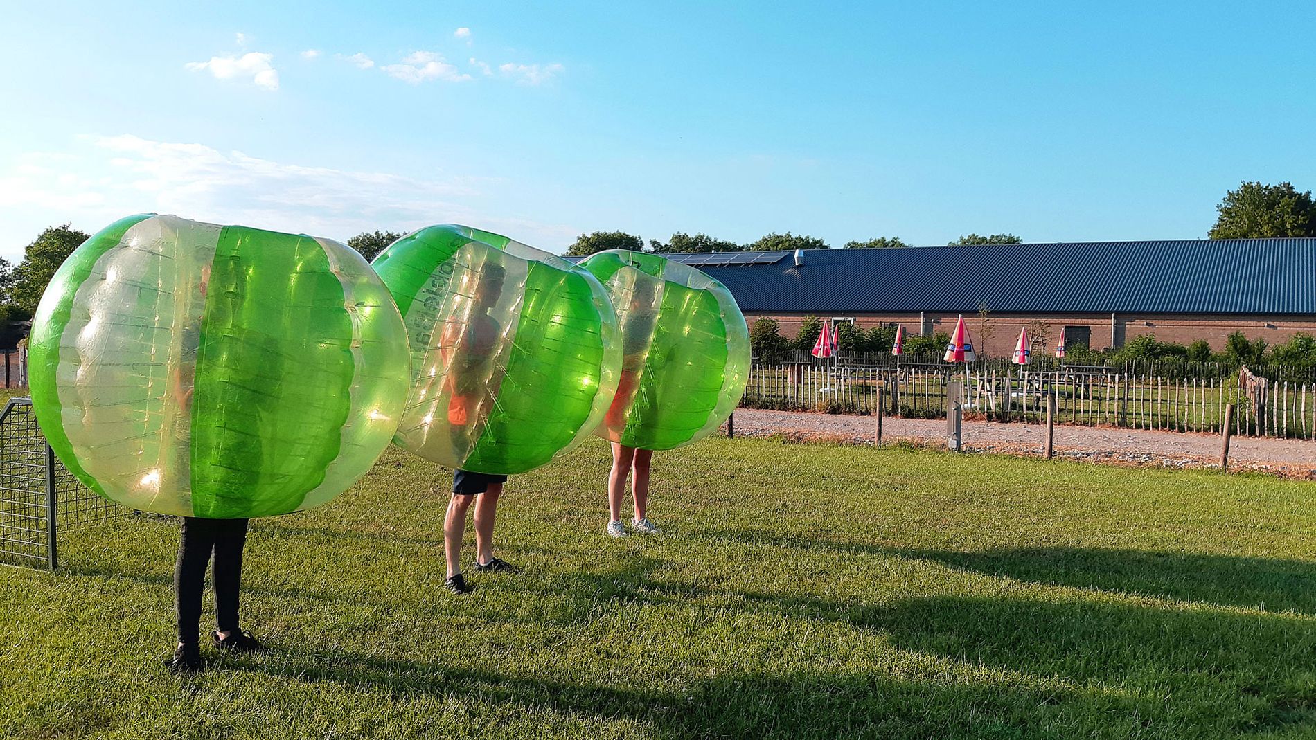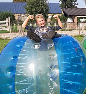 Stap in een grote opblaasbare bal en stuiter alle kanten op! Botsen, rollen en proberen te scoren, alles tegelijk. Vergeet tactiek, dit is voetbal vol chaos, actie en keihard lachen.