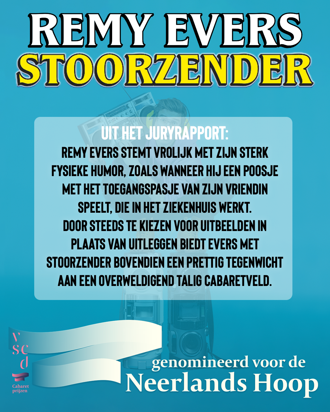 Leuk om te weten: Remy is genomineerd voor de Neerlands Hoop. De cabaretprijs van de VSCD voor het grootste aanstormende talent met het meest veelbelovende programma. We feliciteren Remy van harte met deze terechte nominatie en kijken uit naar een spannende ontknoping op maandag 13 oktober a.s. Bestel alvast je tickets en mis het niet!