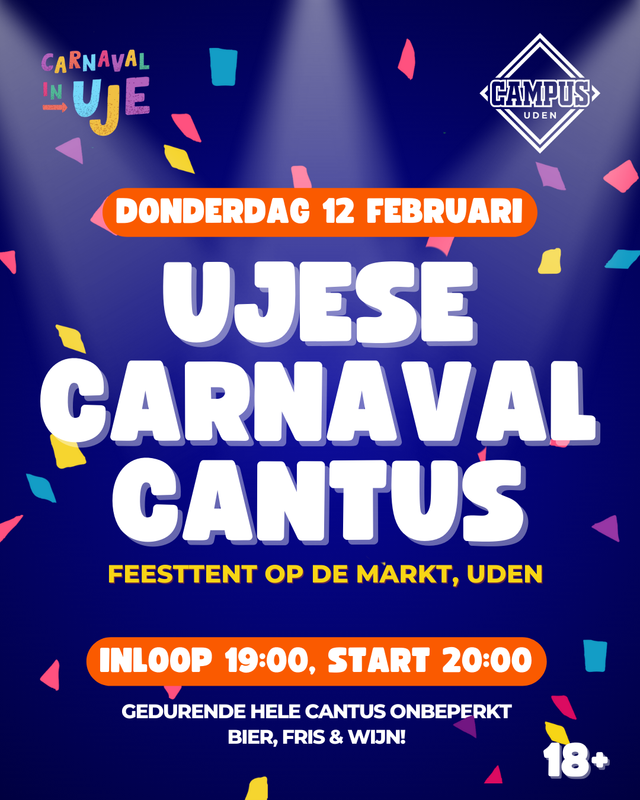 De Ujese Carnavalscantus keert terug in een grotere, nog feestelijkere editie! Na een volledig uitverkochte eerste editie vorig jaar verhuist het populaire carnavalsevenement naar de grote tent op de Markt in Uden. Jongerenorganisatie Campus Uden zorgt voor een avond vol meezingers, carnavalsmuziek en een gezellige cantussfeer.