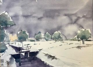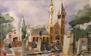 Expositie 'In de Consequenties', Aquarellen en pentekeningen van Jo Knoups, tevens bestuurslid van stichting Het Kerkje.