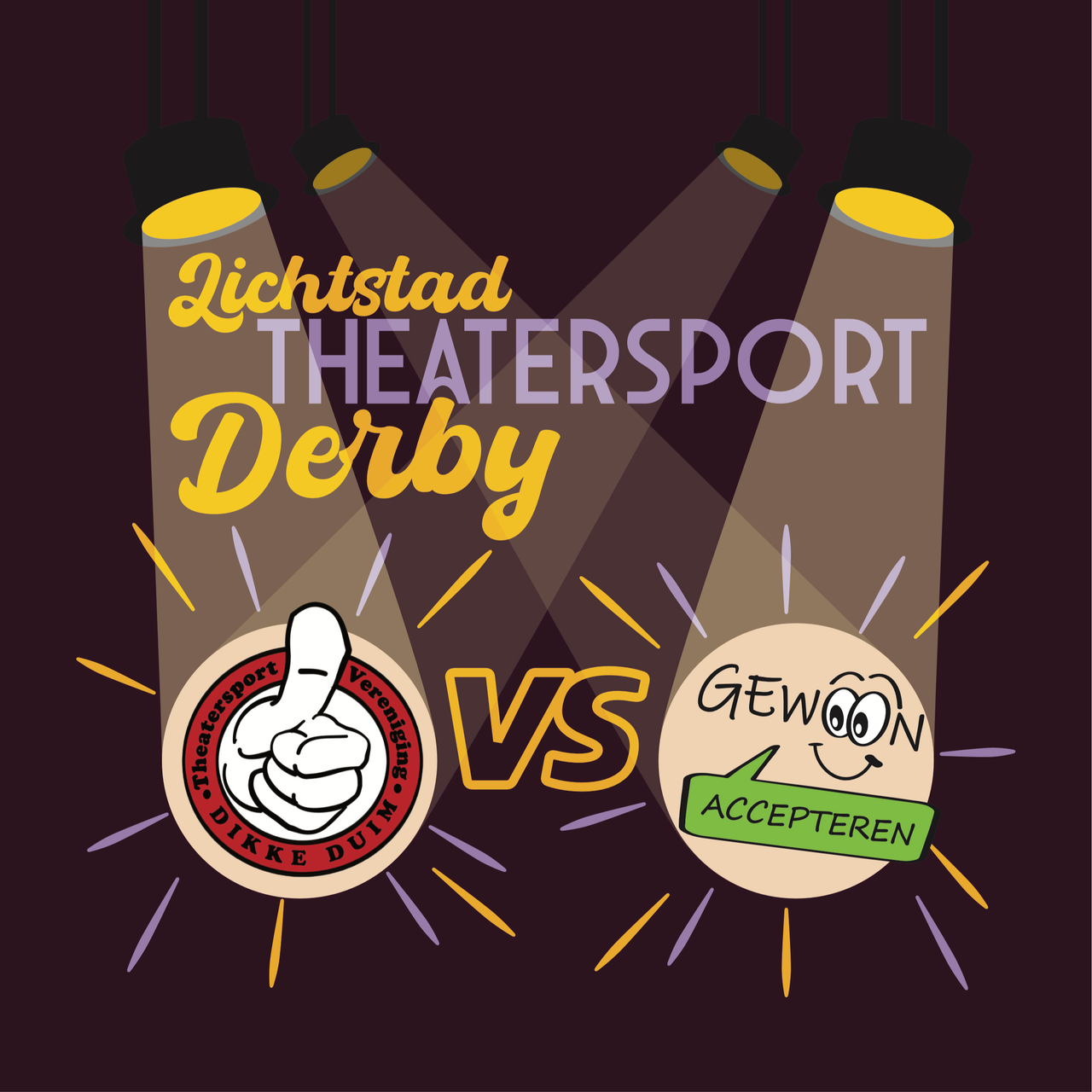 De teams van Gewoon Accepteren en Dikke Duim stappen de arena in voor een echte theatersportwedstrijd. Op 11 april 2026 strijden ze in de concertzaal van CKE om de Eindhovense eer. Verwacht rechters, rozen en sponzen. Verwacht spanning, snelheid en spelplezier. Wie support jij: de frisse, creatieve spelers van Gewoon Accepteren met hun 2,5 jaar ervaring of de doorgewinterde improspelers van Dikke Duim, al jarenlang bekende gezichten in de Eindhovense scène?
