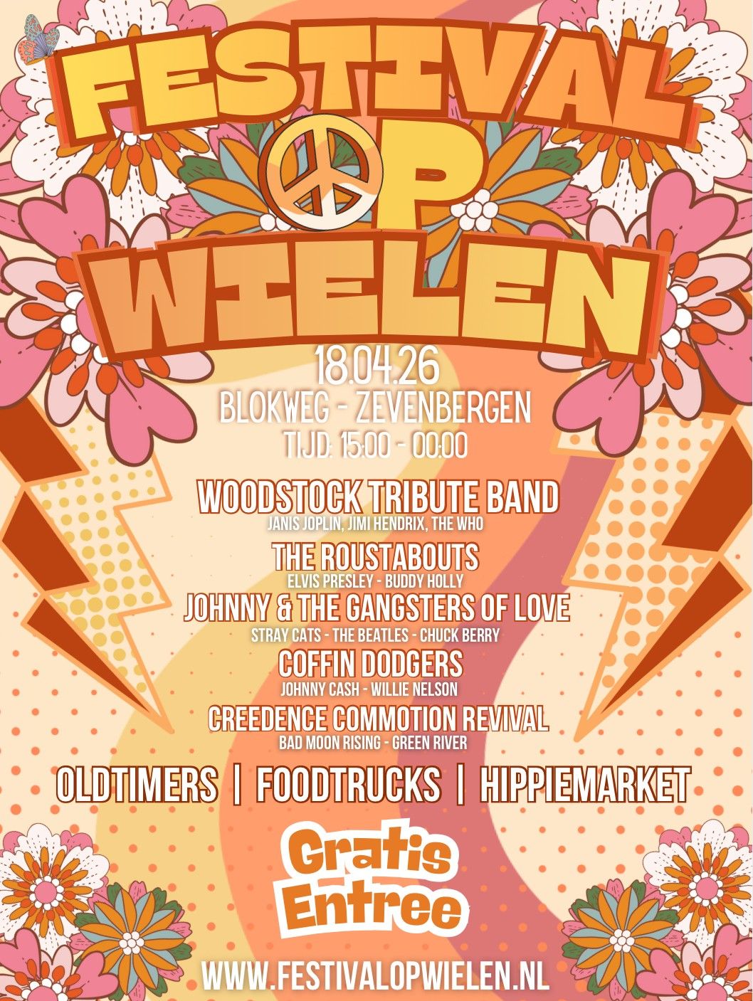 Na de geweldige swingende eerste editie in Noordhoek rollen we op zaterdag 18 april 2026 Zevenbergen in met onze bonte bende vol oldtimers, foodtrucks, de hippiemarkt, livemuziek en heel veel retro vibes.