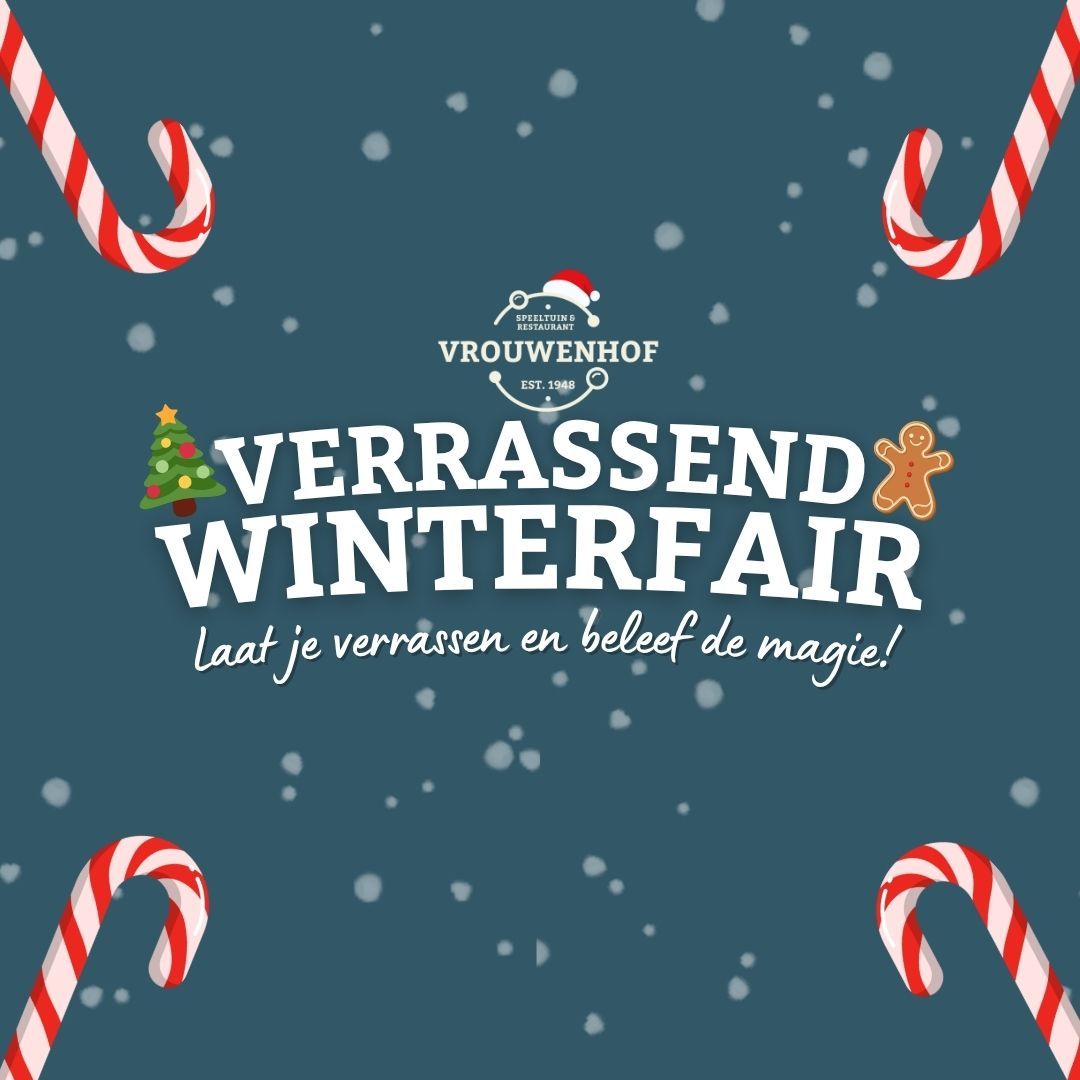 Een magische winterfair bij speeltuin Vrouwenhof. Het terras wordt omgetoverd tot een knusse winterwereld vol lichtjes, muziek en warme sfeer. Geniet van heerlijke winterse lekkernijen, ontdek de leukste stands met unieke producten en cadeautjes, en warm op bij de vuurkorven met een dampende chocolademelk of glühwein in je hand. Er klinkt vrolijke muziek, er zijn spelletjes voor jong en oud, en overal proef je de magie van de feestdagen.