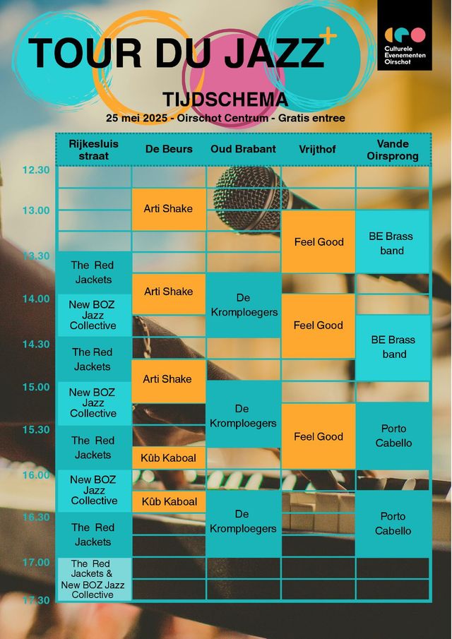 Tour du Jazz op zondag 25 mei 2025. Van 12.30-18.00 uur, gratis entree.