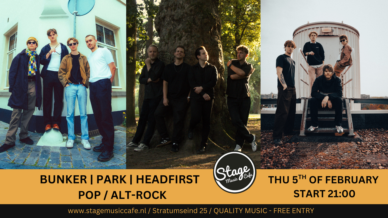 Kom naar een avond waar de bravoure van Britrock samensmelt met aanstekelijke popmelodieën. Deze line-up bestaat uit drie bands: BUNKER, die de leemte opvult voor authentieke Nederlandse Britrock met een sound die doet denken aan de grootheden uit de jaren '90; Headfirst, een vijfkoppige band die bekend staat om hun krachtige sound en verfijnde, energieke ritmes; en PARK, die een unieke mix van pop en rock brengt vol pakkende melodieën en onverwachte harmonieën. Mis deze indrukwekkende showcase van rauwe energie en muzikale veelzijdigheid niet!