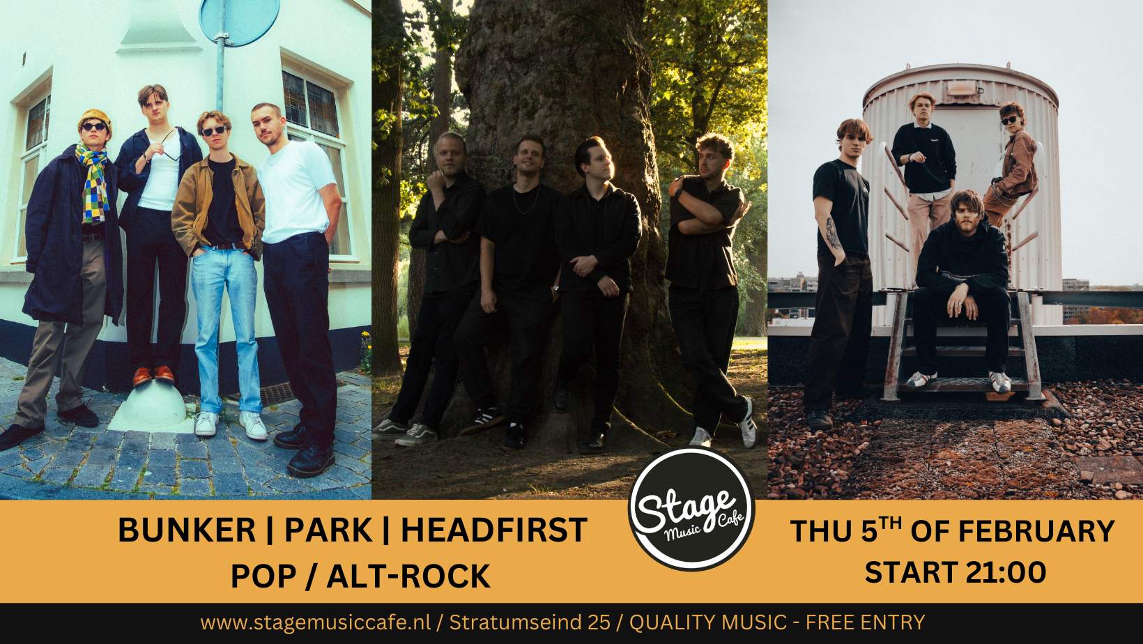 Kom naar een avond waar de bravoure van Britrock samensmelt met aanstekelijke popmelodieën. Deze line-up bestaat uit drie bands: BUNKER, die de leemte opvult voor authentieke Nederlandse Britrock met een sound die doet denken aan de grootheden uit de jaren '90; Headfirst, een vijfkoppige band die be
