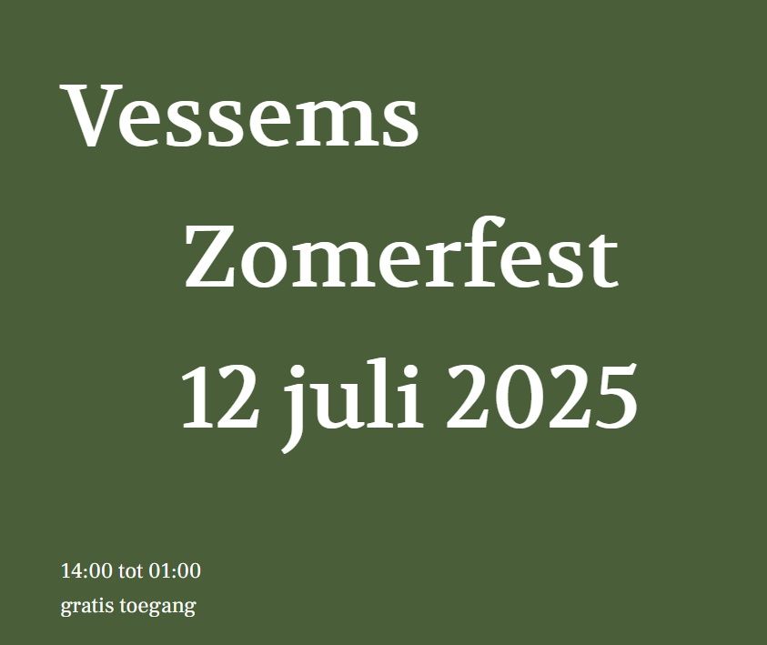 Op 12 juli 2025 is het weer zover! Kom en beleef de 4e editie van het Vessems Zomerfest, het gratis muziekfestival voor jong en oud!