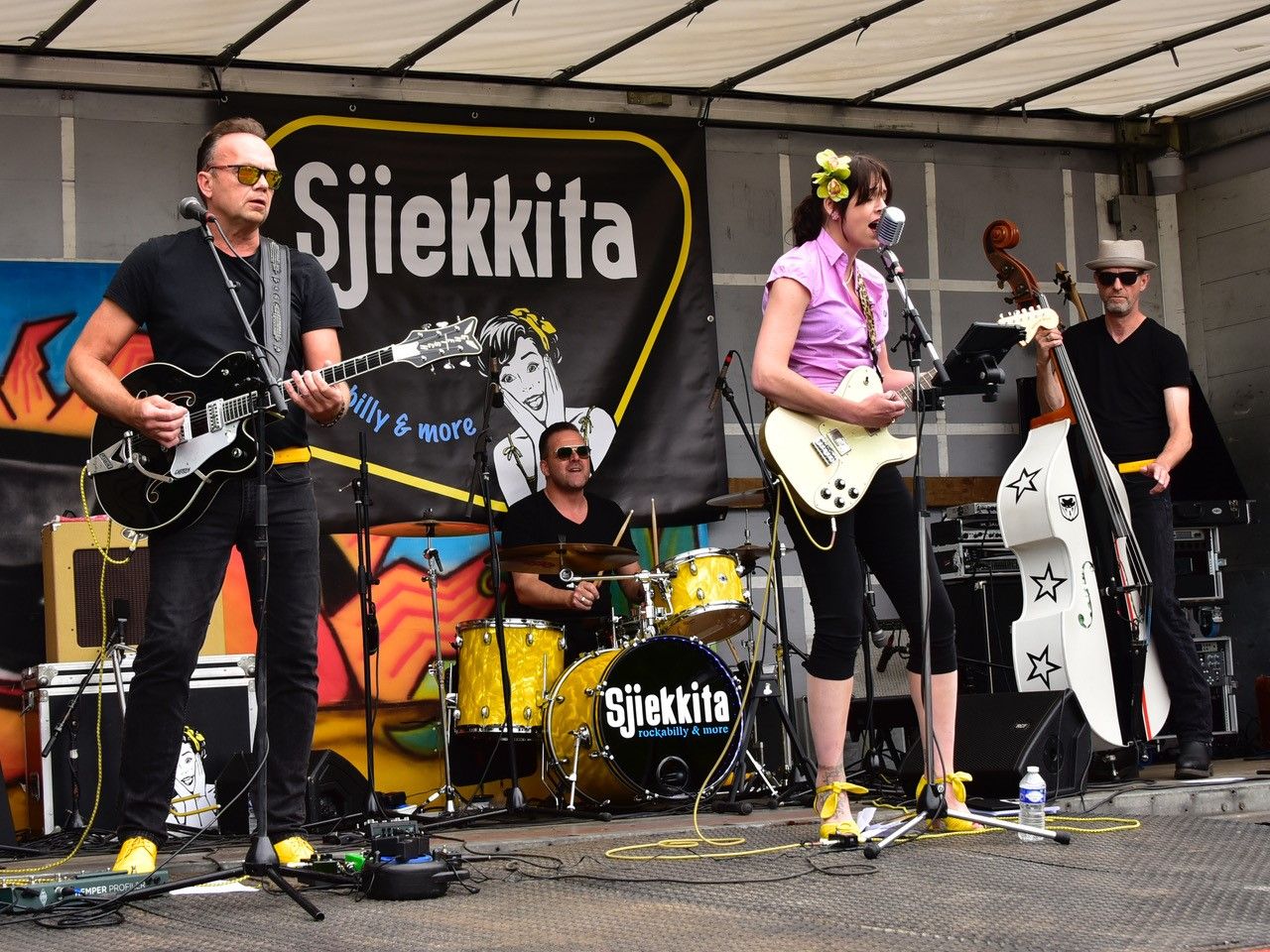 Zaterdag 30 Mei om 21.00 uur is het podium van De Afzakkerij op de Noordkade voor een rockabilly-band met een ‘bite’ en regelmatig een uitglijder naar iets lekkers! Sjiekkita speelt toegankelijke rock 'n' roll en hits uit alle tijden. Zowel vrouwelijke als mannelijke vocalen, en instrumentarium zoals het hoort: contrabas, gitaren, drums. Leuk om naar te kijken, te luisteren, dansen, springen en mee te zingen, kortom de ideale act voor iedereen! Sjiekkita staat voor het niet recht spelen, wat krom bedoeld is! De toegang tot het optreden is gratis.