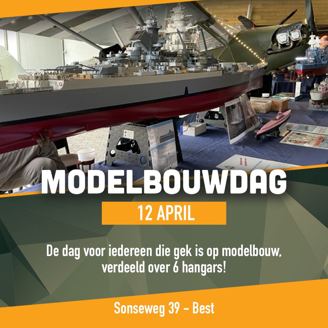 De dag voor de amateur- en profbouwer! Verdeeld over vier hangars laten zowel zelfstandige bouwers als modelbouwclubs hun bijzondere werken zien. Van grootformaat RC tanks tot diorama's tot vliegtuigen en boten, je vind het deze dag allemaal. Deze modelbouwdag staat in het teken van WW2, en is te beleven te midden van ons originele WW2 materiaal zoals vliegtuigen, rupsvoertuigen en geschut, hoe bijzonder is dat!