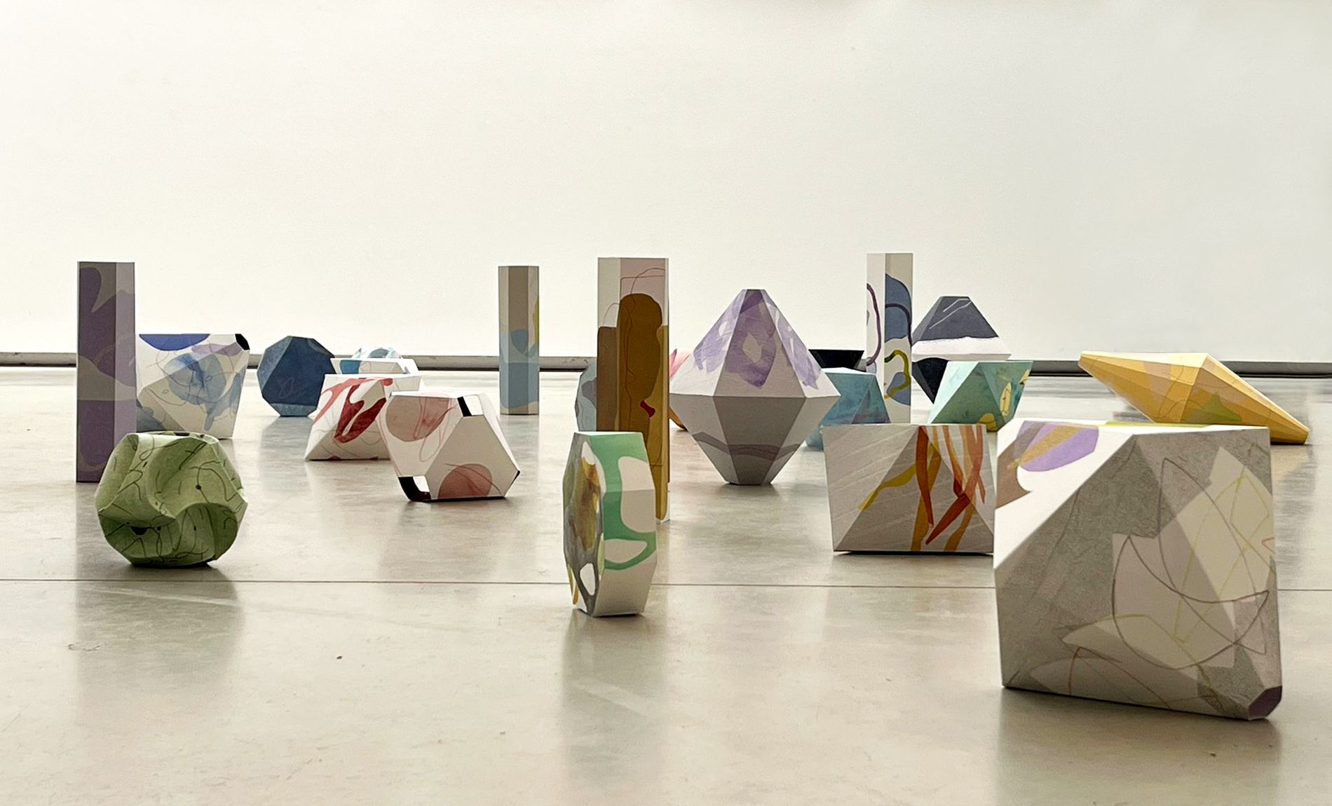 In de workshop ga je aan de slag om een of meerdere objecten te maken van papier. Ze zijn ongeveer 20 – 25 cm groot. Onder begeleiding leer je hoe je eenvoudige platte vormen omzet in 3D met behulp van snijtechnieken, rillen van vouwlijnen en verbindingen met lijm. Op de platte vormen worden eerst tekeningen aangebracht met kleurpotlood of viltstiften. Je hoeft niet goed te kunnen tekenen. Het mag van alles voorstellen. Stap voor stap leer je vorm te geven aan de objecten. Laat je inspireren door alles wat je op de expositie kunt zien. In de expositie heeft Anske Doevendans een installatie staan van vijfentwintig 3D objecten.