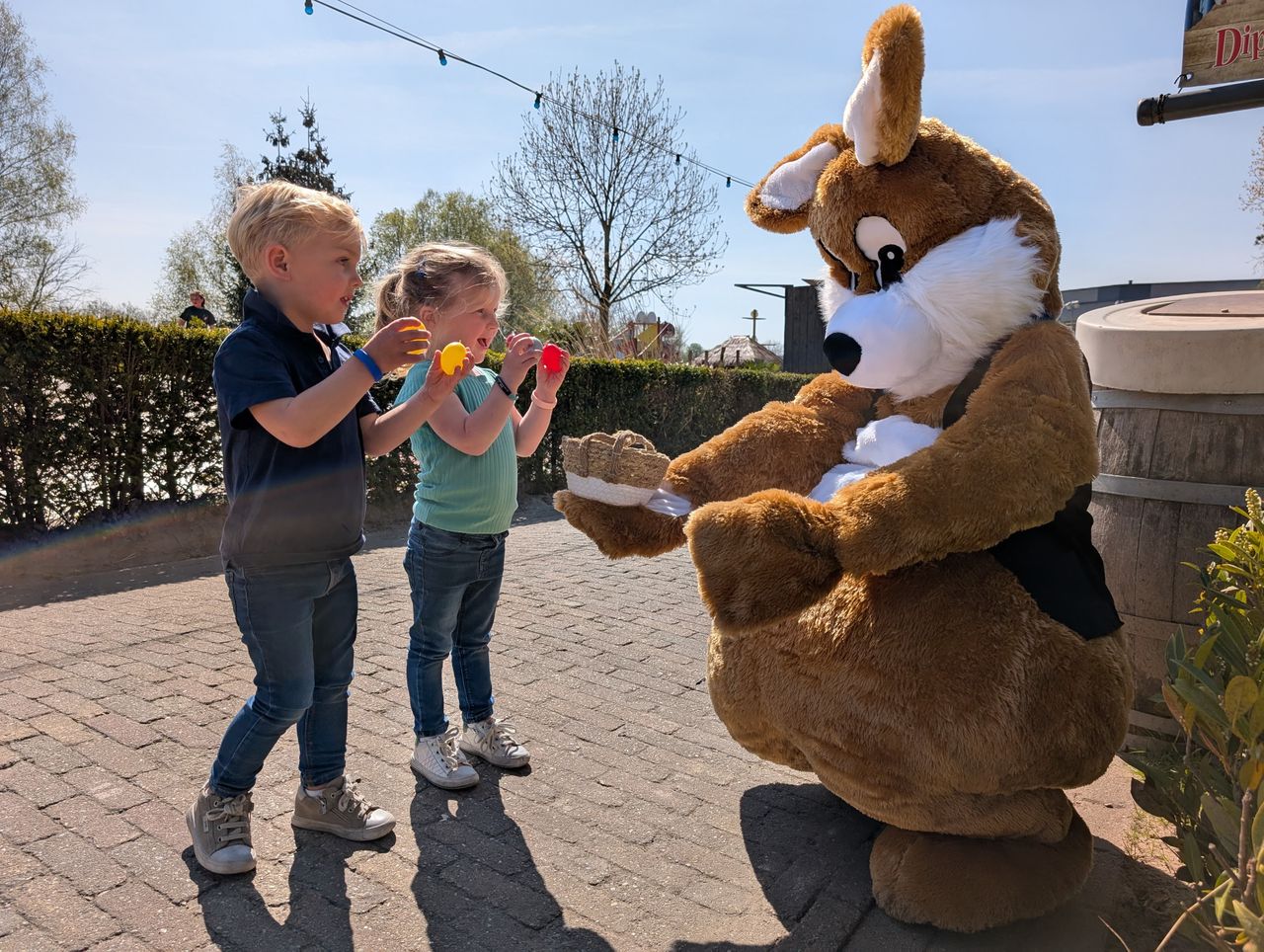 Onze Paashaas hupt her en der rond in het park. Hij staat open voor alle kinderknuffels en highfive’s!