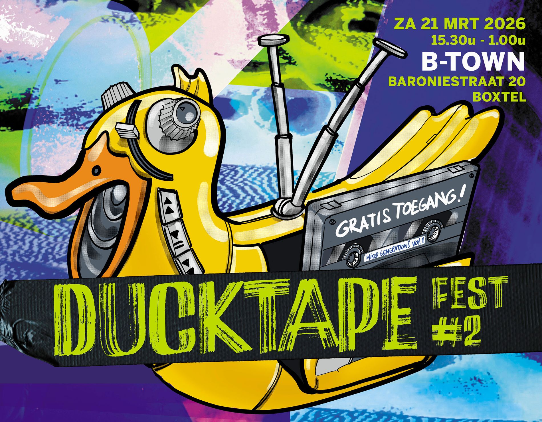 Op Zaterdag 21 Maart vindt de 2e editie van DuckTape Fest plaats in B-Town, Boxtel. Na een succesvolle eerste editie keert het festival terug met nog meer muziek, energie en ruimte voor jong talent – dit keer al vanaf de middag.