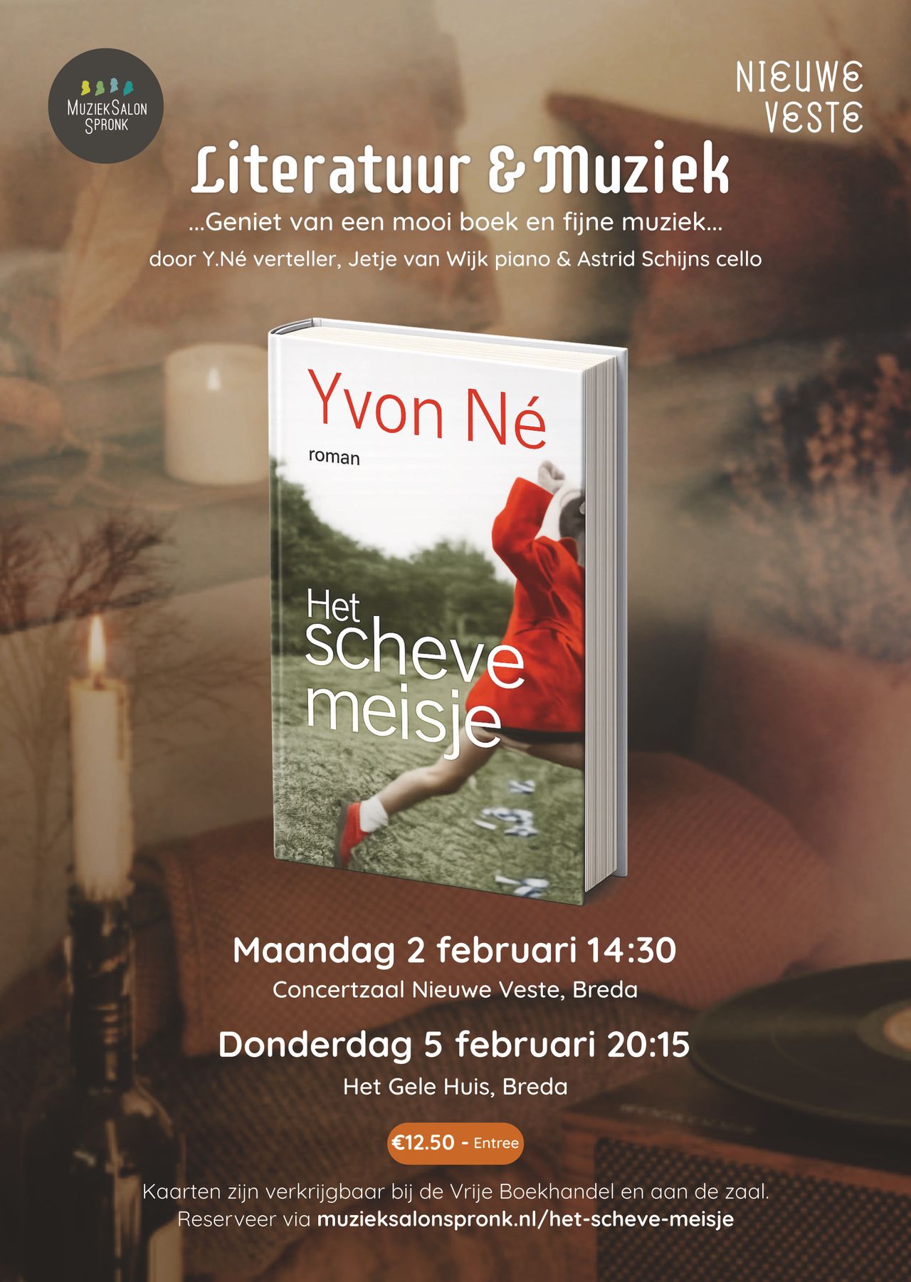 MuziekSalon Spronk ‘Het scheve meisje’ van Yvon Né bij Literatuur & Muziek ..een in boeiende zinnen en met een prachtige woordkeuze geschreven roman… Hartveroverend en ontroerend. Voor info en reserveren: www.muzieksalonspronk.nl/het-scheve-meisje