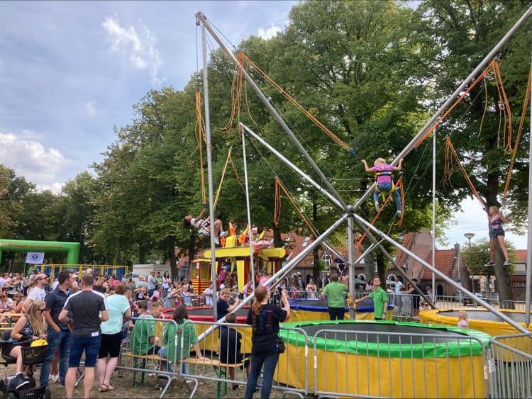 Het Wilhelminaveld wordt omgetoverd tot een ware speeltuin. Kinderen kunnen hier genieten van de bungee trampoline, springkussens en allerlei andere speeltoestellen.