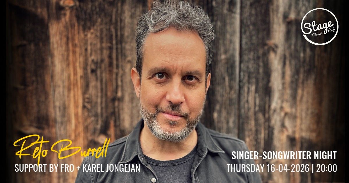 Er staat weer een hartverwarmende singer-songwriteravond op het programma in Stage Music Cafe. Met de Zwitserse singer-songwriter Reto Burrell (rock, pop, country, folk en blues, hij wordt vergeleken met Tom Petty). Support acts: Fro! (Oosterhout) en Karel Jongejan (Eindhoven).