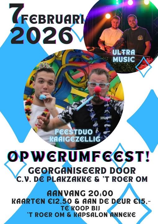 Na winterpret komt de voorpret voor het volgende echt Brabantse feest “Carnaval”. Om alvast in de stemming en sfeer te komen is er op zaterdag 7 februari het Opwerrumfeest. Georganiseerd door CV de Plakkers ism ’t Roer Om in Lage Zwalu...