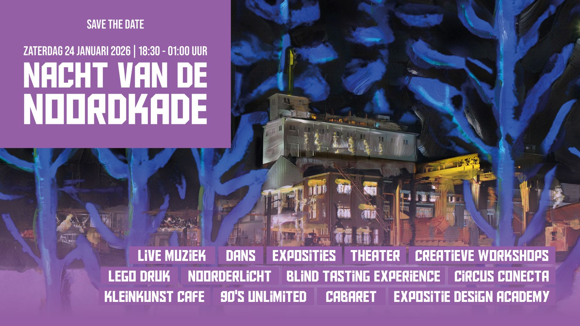 Op 24 januari kun je gaan genieten van heerlijk eten, live optredens en een gebouw barstend van cultuur, tijdens de Nacht van de Noordkade.