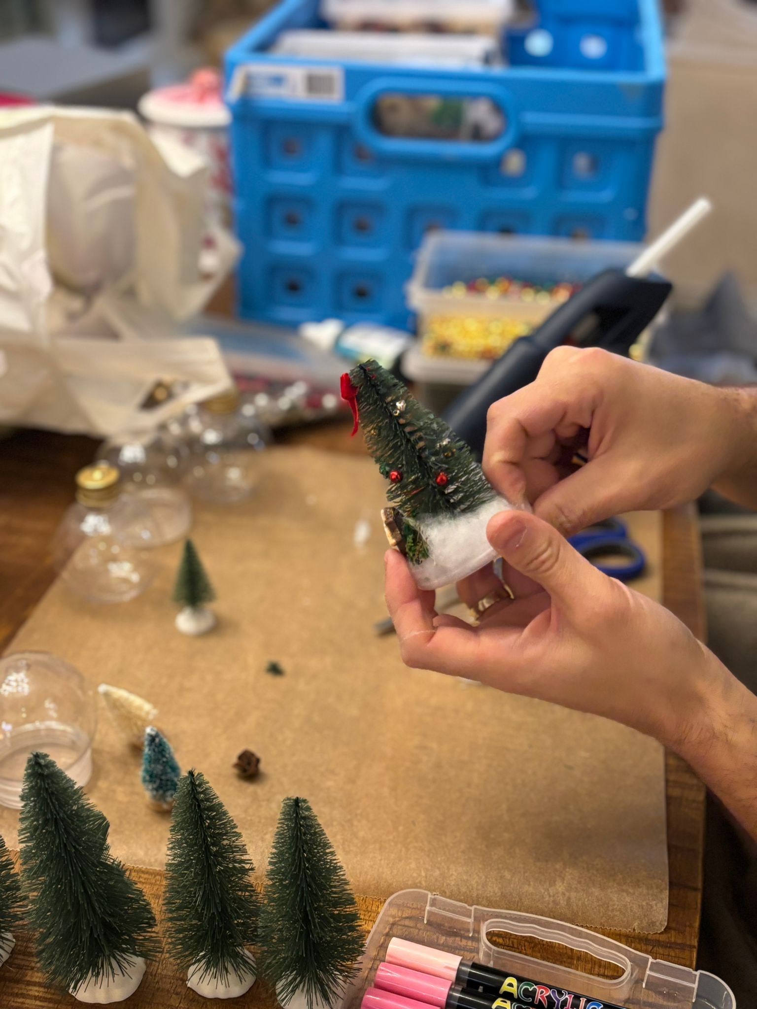De items met kerstthema knutsel je gratis in elkaar. Je kunt ook voor een ander knutselwerkje kiezen, zoals een magisch toverdrankje en een zelfgemaakte toverstok. Voor deze knutselwerkjes wordt een kleine vergoeding gevraagd voor de materialen.