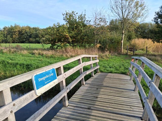 Vanaf onze B&B loopt u in slechts vijf minuten naar de Steegsche Loop. Via het schilderachtige bruggetje bereikt u een idyllisch plekje met een bankje aan de poel.