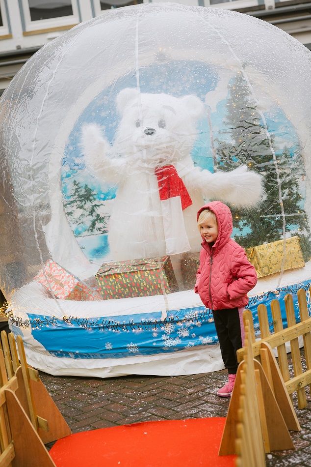 Op de Nieuwe Markt staan opblaasbare en sfeervolle winterattracties voor kinderen. Ook wordt er warme chocomel en erwtensoep uitgedeeld.