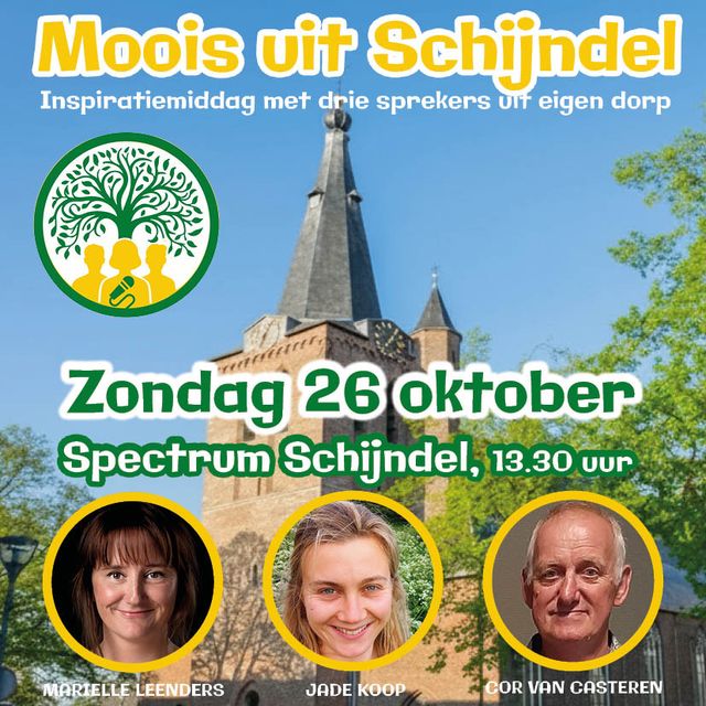 Zondag 26 oktober staat in Schijndel een middag in het teken van Moois uit Schijndel, een bijeenkomst die de band met het dorp versterkt via verhalen die raken en verbinden. Drie inspirerende Schijndelnaren delen hun kennis en passie vanuit een creatieve invalshoek.