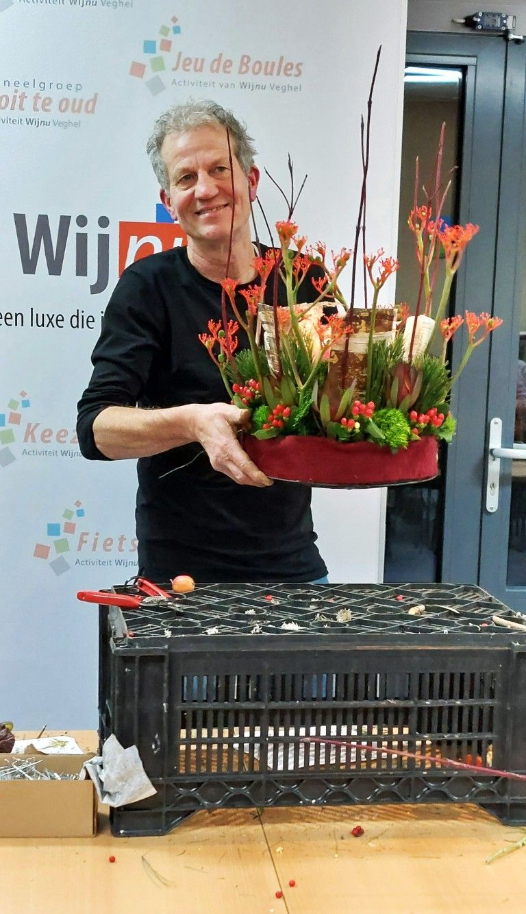 De demonstratie vindt plaats op donderdagavond 11 december in het WijNu gebouw aan de Wilgenstraat 15 in Veghel. Van Schie laat je de laatste trends zien op het gebied van bloemschikken en natuurlijke materialen die voor diverse creaties kunnen worden gebruikt. De bijzondere kerstarrangementen van de gastdocent worden onder de aanwezigen verloot.
