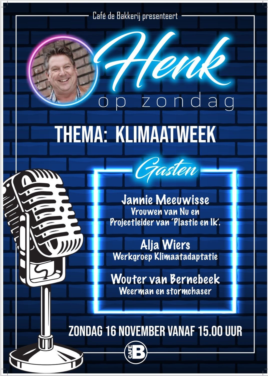 De maandelijkse talkshow Henk op Zondag zoomt zondag 16 november in op de Klimaatweek, die van 10 tot en met 16 november wordt gehouden in de gemeente Moerdijk.