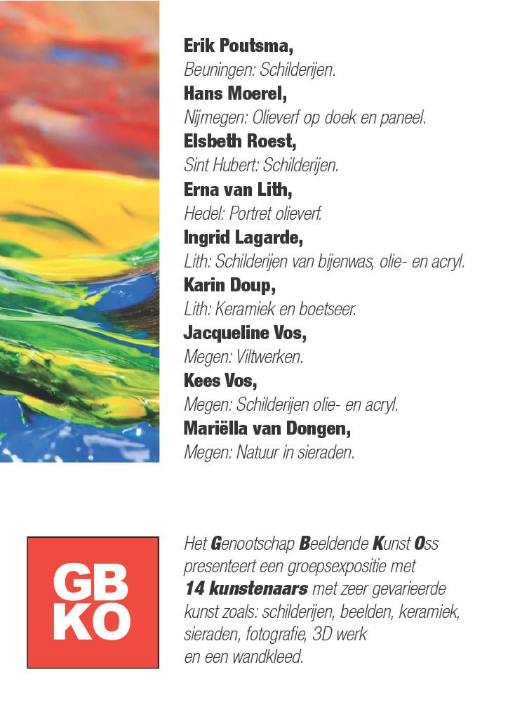 Kunstvoer nodigt u uit voor onze voojaars-expositie in Acropolis te Megen met het werk van totaal 23 kunstenaars.
