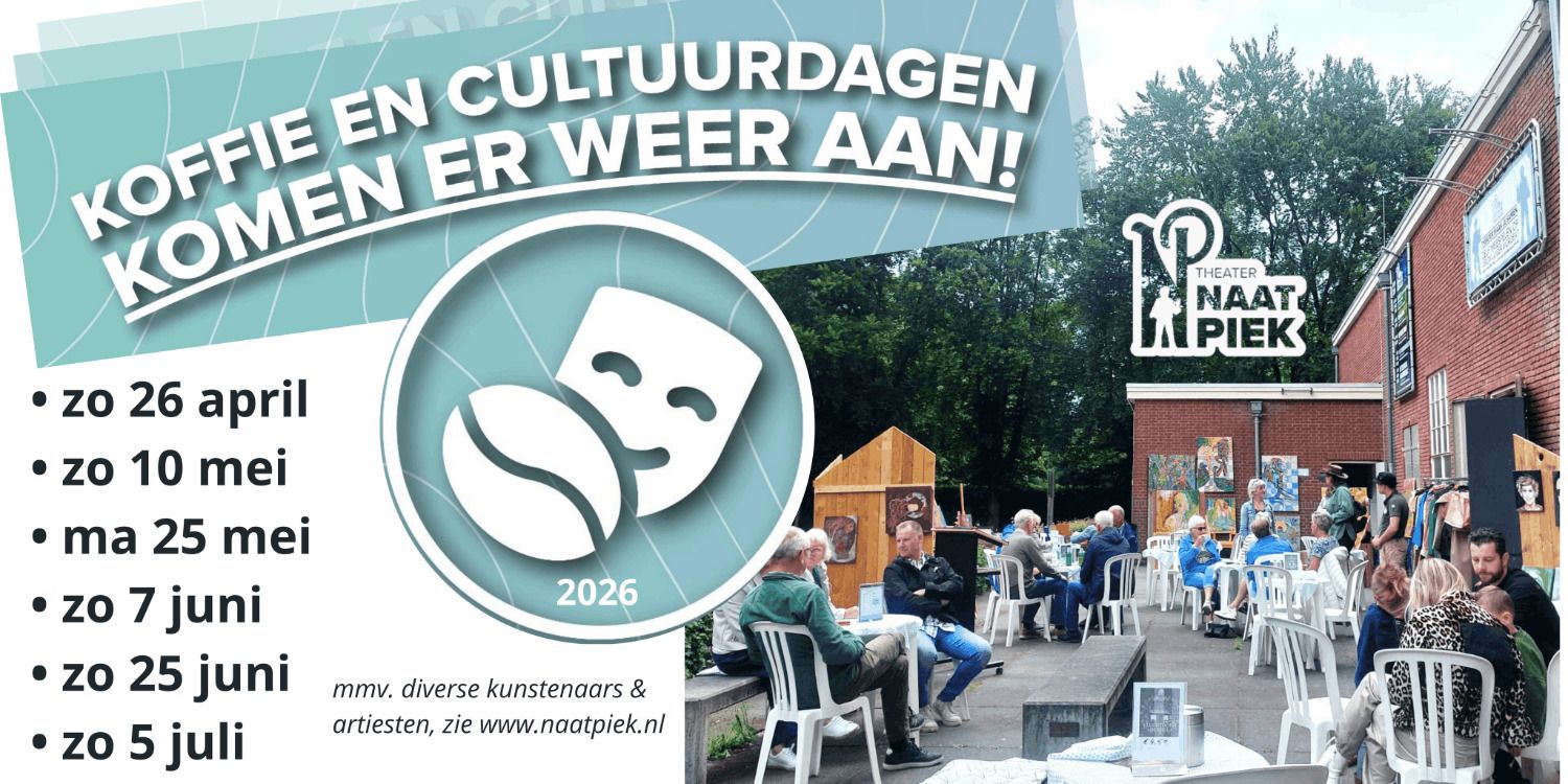 Ook dit jaar organiseert Theater Naat Piek weer de koffie- en cultuurdagen. Deze cultuurdagen zullen worden gehouden op zondag 10 mei, maandag 25 mei, zondag 7, 21 juni en 5 juli 2026.