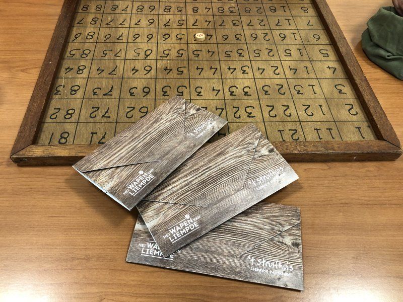 In de grote zaal gaan we kienen met leuke prijzen. We hebben de nummerplankjes dus geen stiften of muntjes nodig. In de kleine zaal zitten de kaarters met zelf gemaakte groepjes. Ook hier krijgt iedere winnaar van de tafel een leuke prijs.