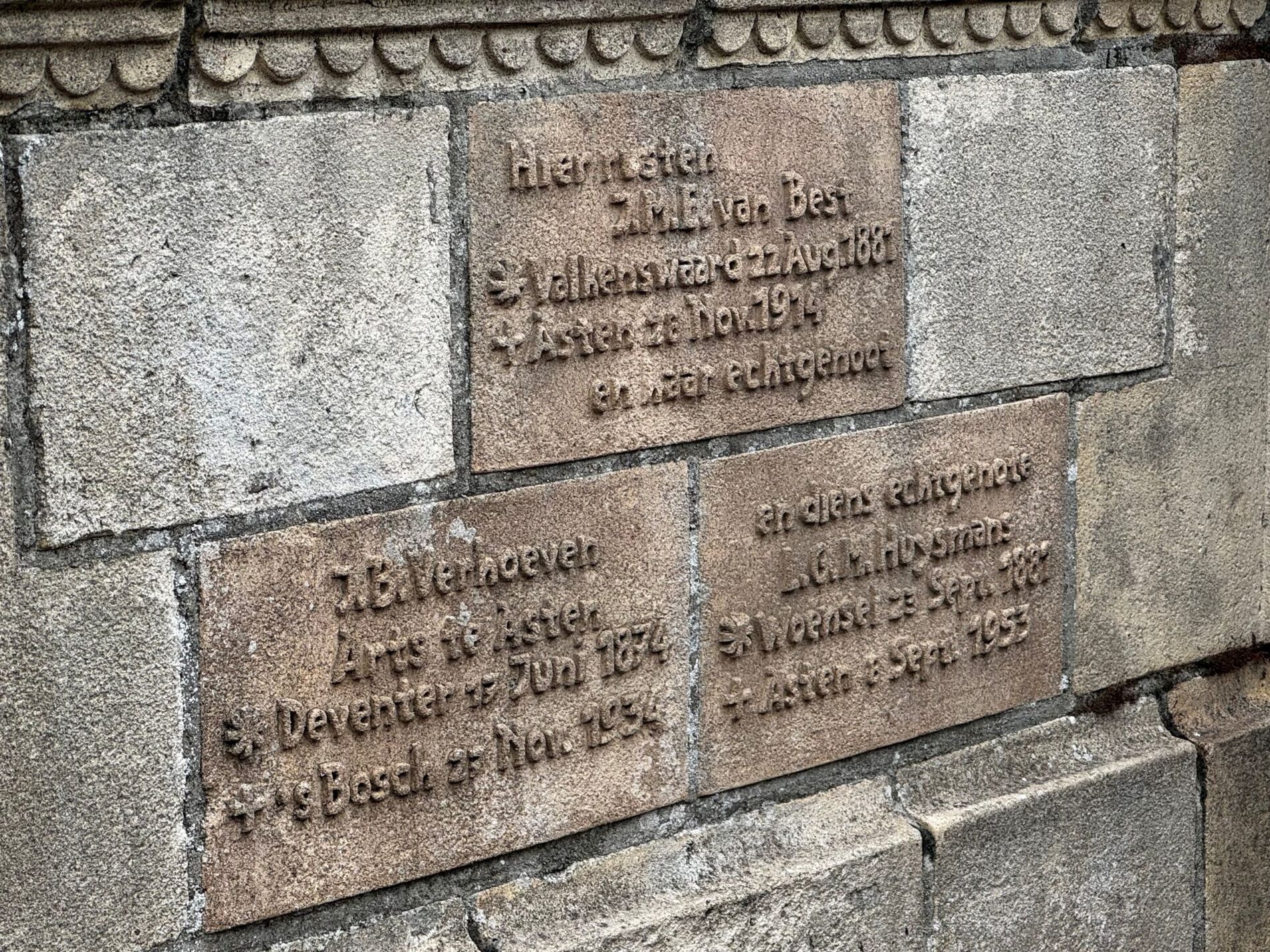 – HIER RUSTEN J.M.E. VAN BEST * VALKENSWAARD 22 AUG. 1881 + ASTEN 23 NOV. 1914 EN HAAR ECHTGENOOT