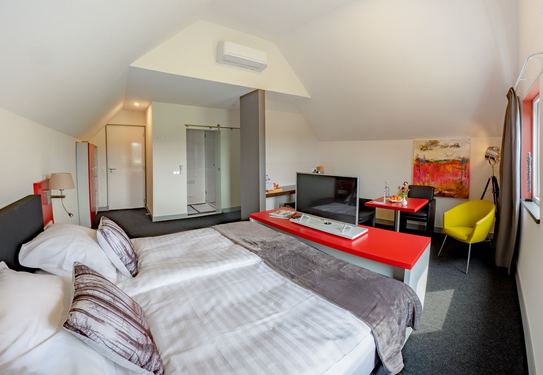 De kamers zijn vernoemd naar de in het natuurgebied levende dieren. Kamer Exmoor is gevestigd in het woonhuis en heeft een afmeting van 22 m2 en beschikt over een badkamer met ligbad, douche en toilet. Je hebt toegang tot de kamer via de voordeur van de woning (je eigen ingang...) die meteen naast de kamer gelegen is. Op de etage in het bijgebouw tref je juniorsuite Tauros aan. De kamer heeft een afmeting van 28 m2 en beschikt over een ruime badkamer met zeer krachtige hoofd- en handdouche en een aparte toiletruimte. De door jezelf te regelen verwarming en airconditioning zorgen voor een behaaglijke temperatuur. De seniorsuite Wisent is ook gevestigd op de etage van het bijgebouw. Deze kamer met een afmeting van 37 m2 is met recht een suite te noemen. De sanitaire voorzieningen alsmede de verwarming en airconditioning zijn hetzelfde als in de kamer Tauros. De bed and breakfast beschikt over een ruim gastenterras, parkeerplaatsen op eigen terrein en inpandige fietsenstalling.