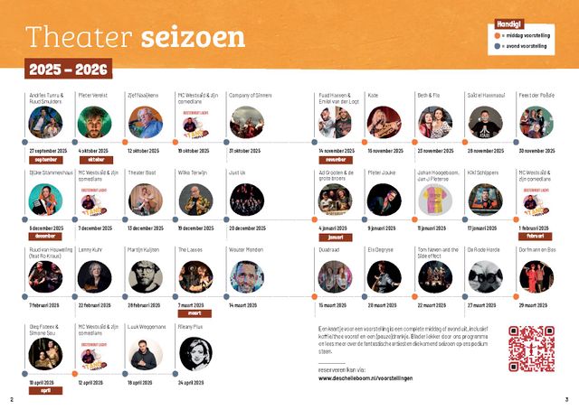 Misschien wel het leukste kleine theater van Brabant! Daarmee mocht De Schelleboom Brabant vertegenwoordigen in het boek 'Klein theater, groot hart', een ode aan de kleine theaters van Nederland. De Schelleboom in Oosterhout biedt een theaterseizoen vol cabaret, toneel, muziek, stand up, verhalen en meer! Gevestigde namen, nieuwe namen, namen die misschien nog niet zó bekend zijn maar allemaal talenten met hun eigen stijl. Er is (bijna) ieder weekend iets te doen en iedere voorstelling is een klein uitstapje naar een andere wereld in de bijzondere omgeving van een 16e-eeuwse pottenbakkerij.