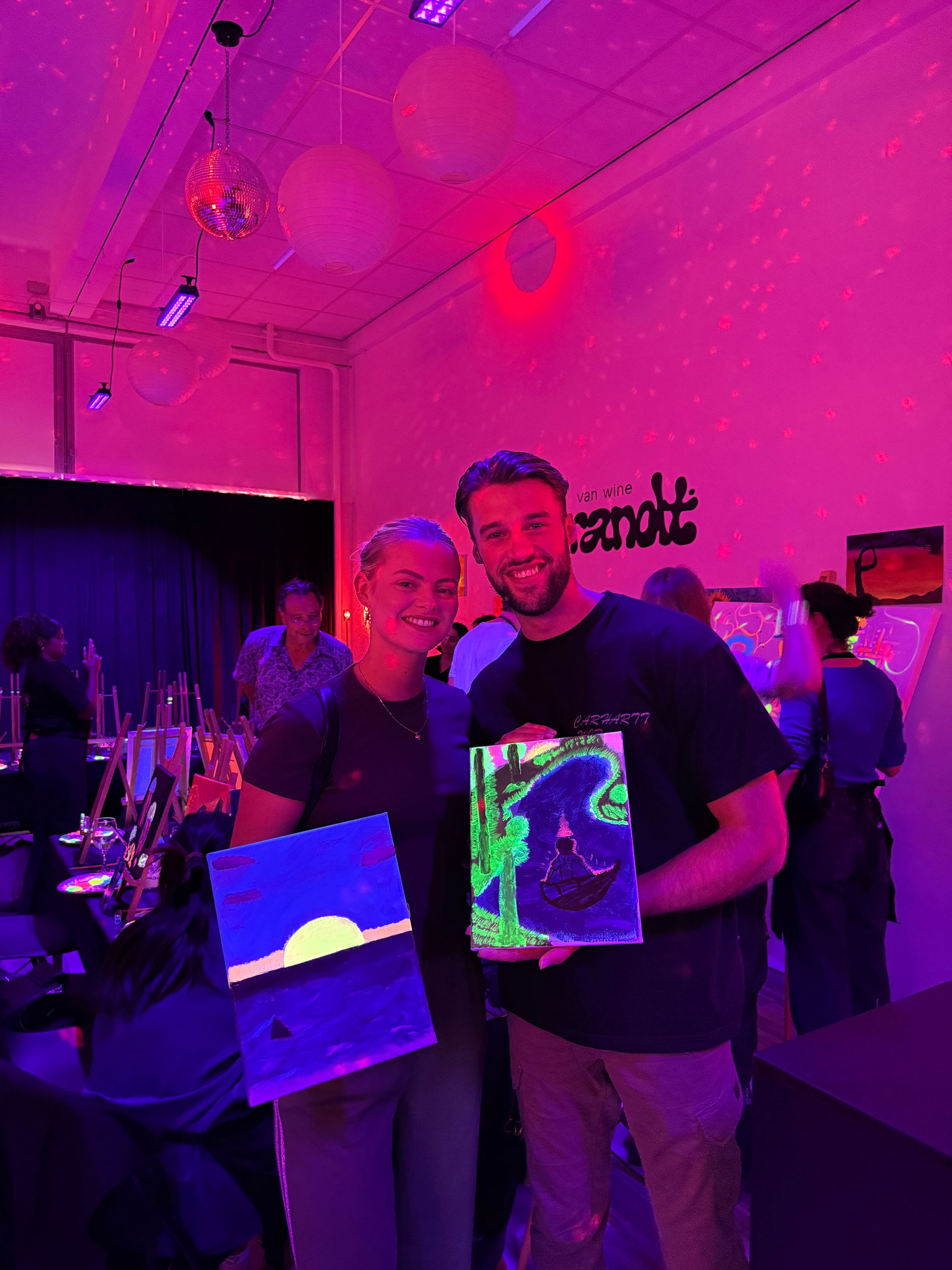 Niet zomaar een sip en paint, maar een heuse schilderervaring met neon- én gewone acryl verf, onder de warme gloed van blacklights en funky discoballen. Tijdens de workshop helpt een kunstenaar je om het schilderij van de dag na te maken, of bij het op het doek zetten van jouw eigen creativiteit. Vragen? Hou je vooral niet in!