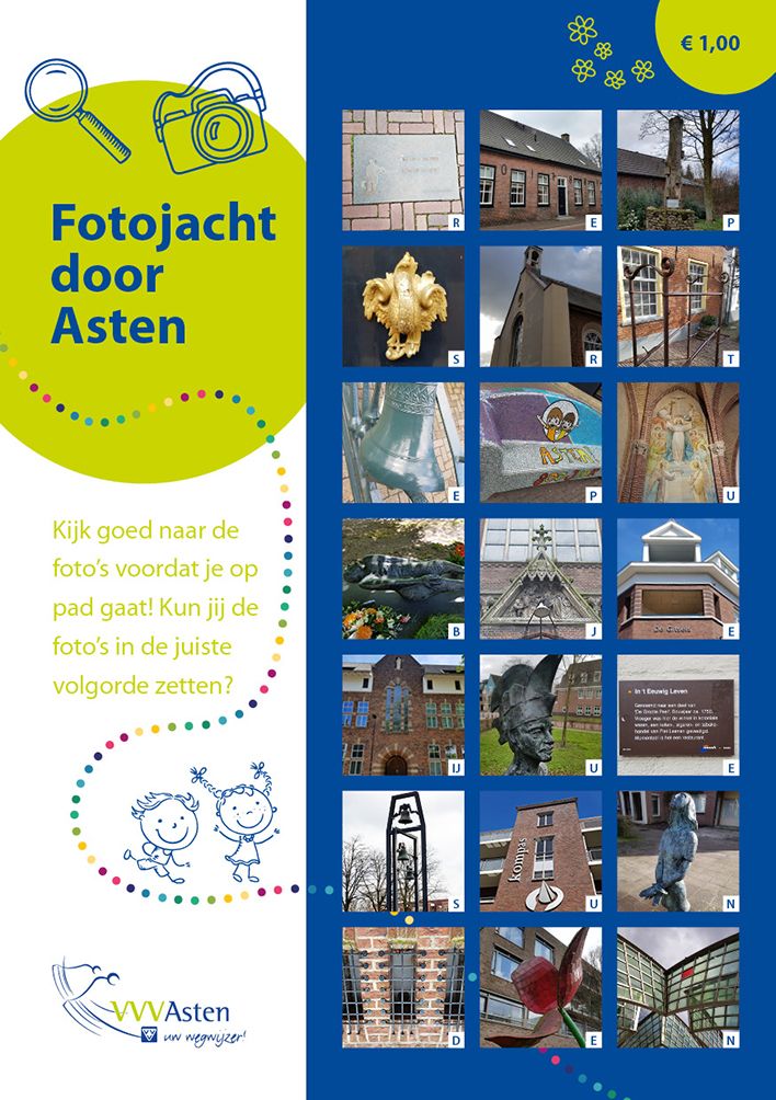 Zowel leuk voor de individuele speurder als voor een kinderfeestje! Fotojacht door Asten is gratis verkrijgbaar bij Toeristisch Asten.