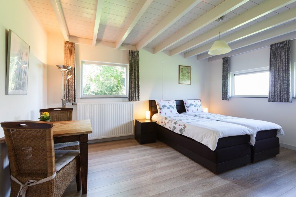 De accommodatie is voor minimaal 3 nachten te boeken en biedt ruimte aan maximaal vier gasten. Er zijn twee tweepersoonskamers met ieder een eigen badkamer, met daarnaast een goed ingerichte keuken en een gezamenlijke ontbijt- en ontspanningsruimte. Via de tuindeuren kun je op het eigen terras genieten van de buitenlucht en de omgeving, dus je hebt veel privacy. Huisdieren zijn binnen niet toegestaan. In het gebouw is wifi aanwezig. De B&B is toegankelijk voor rolstoelen.