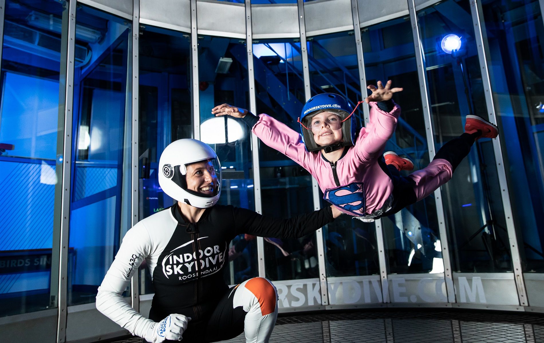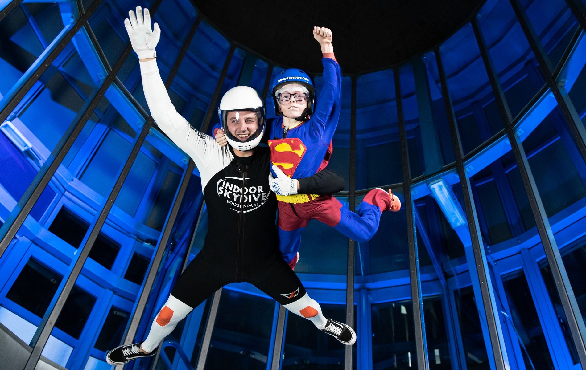 Bij Indoor Skydive Roosendaal beleef je het unieke gevoel van een ‘vrije val’ ervaring zonder dat je hiervoor uit een vliegtuig hoeft te springen. Je zweeft namelijk puur op de kracht van de wind! Tijdens jouw indoor skydive sessie sta je altijd onder begeleiding van een professionele instructeur. Dit zorgt ervoor dat echt iedereen, van jong tot oud, deze unieke ervaring kan beleven.