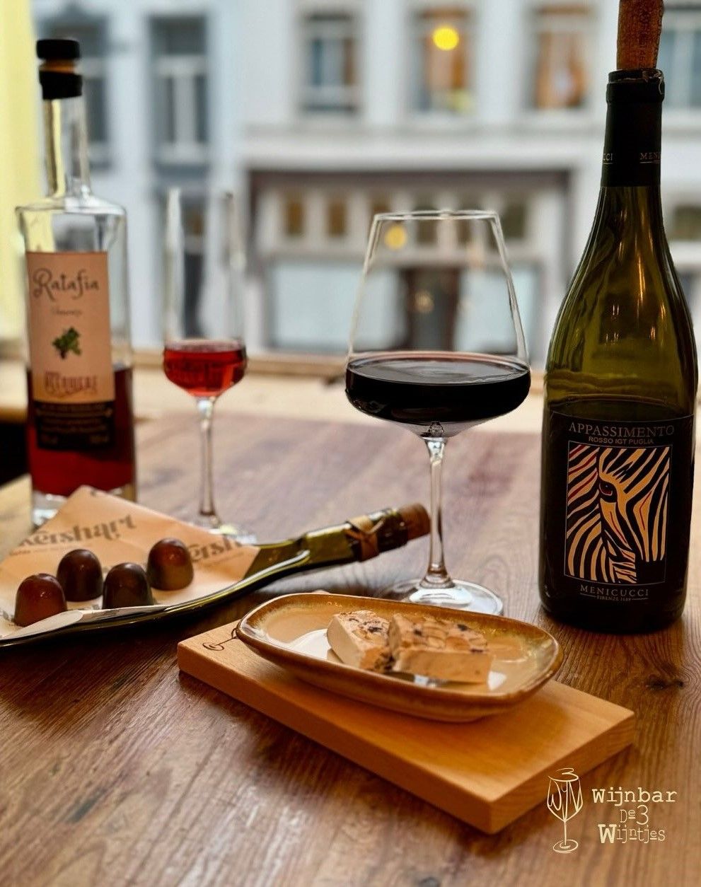 De 3 Wijntjes is een wijnbar Waar Wijn Wijsheid is. De verhalen van de wijn en de wijnmaker zelf staan centraal. De wijnkaart is met zorg samengesteld en behoudt een breed palet van smaken. Qua smaak worden geen concessies gedaan: de wijn spreekt voor zichzelf. En wat uniek is? Dat je iedere wijn per glas kan bestellen.