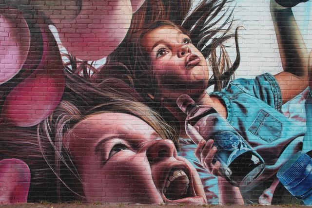 Zowel in het voorjaar als in de zomer heeft Helmond een gezellige kermis. Deze afbeelding verwijst naar Helmond als kermisstad. Zoals je ziet hebben de meisjes een camera in de hand, een analoge. Ze maken selfies en gebruiken een fles diksap als microfoon.