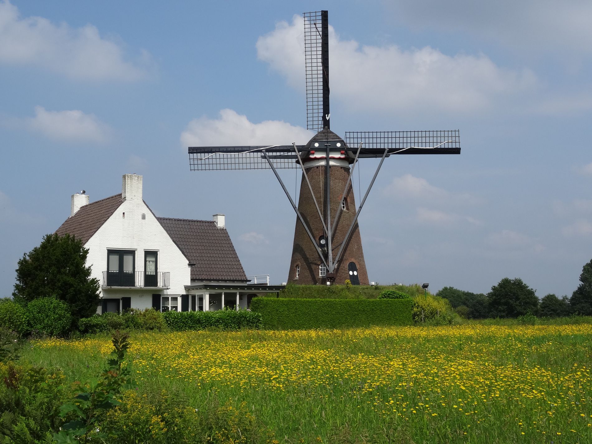 Ten noorden van Nuenen staat deze molen in het open landschap. Vincent heeft de korenmolen getekend en geschilderd. Soms is de molen te zien, door het raam.