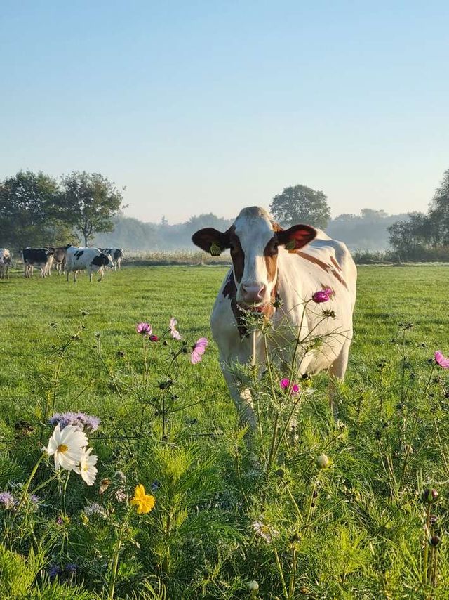Beleef de rust van het agrarische gebied met koeien in de wei. U kijkt uit over de landerijen bij het melkveebedrijf waar zomers regelmatig de koeien op enkele meters van uw camperplaats grazen.