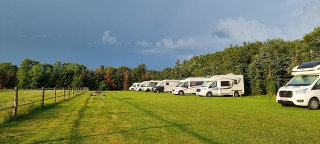 De ruime camperplaatsen liggen op verzorgd en verhard grasland en alle plekken hebben een vrij uitzicht. Alle basisvoorzieningen voor de camperaar zijn aanwezig; drinkwater, legen toilet, legen grijs water, elke plek stroom, gescheiden afval, wifi. Ook is er een infobord en een kast met diverse folders, tijdschriften enz.