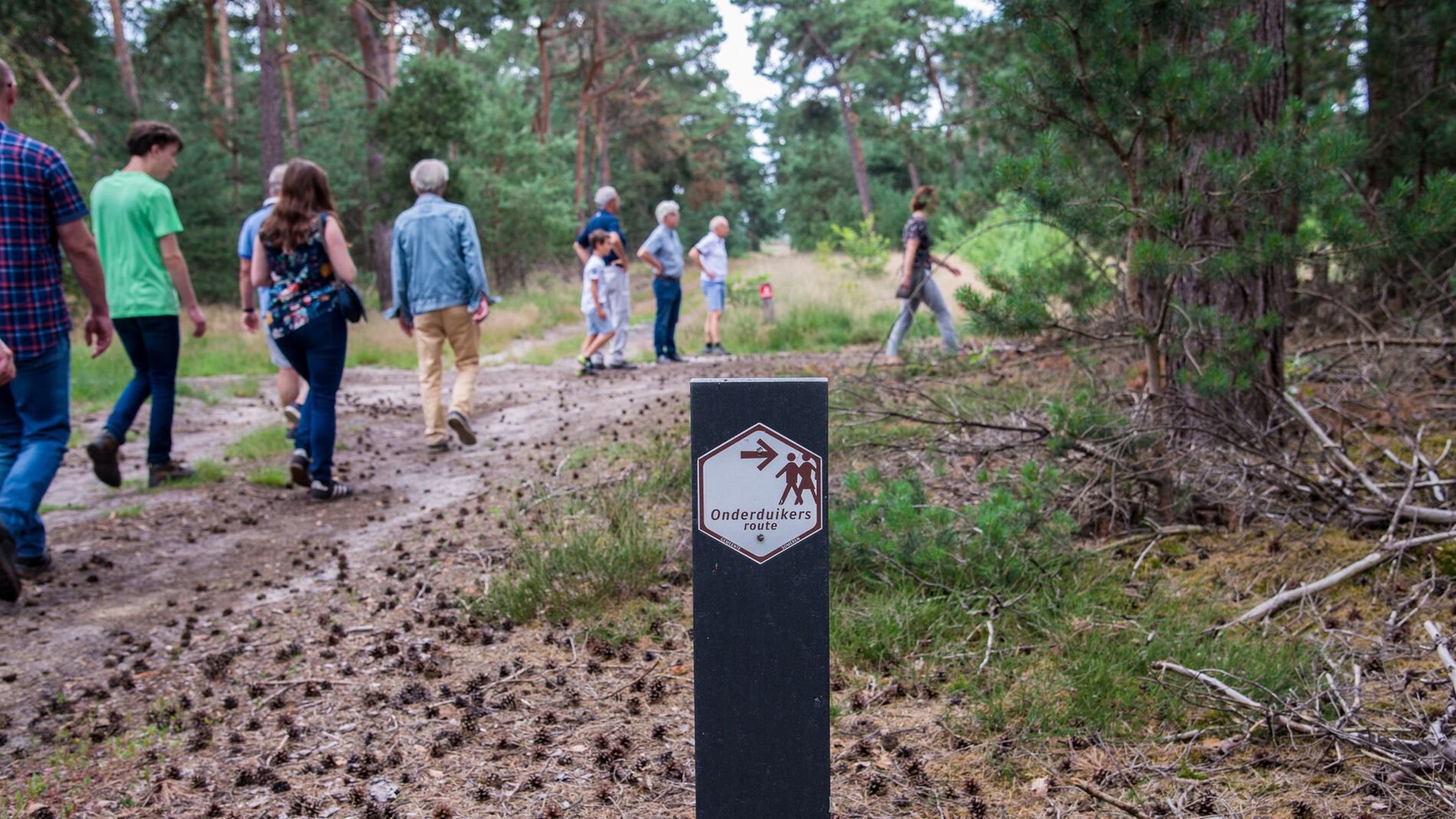 Op de plek waar het onderduikerskamp gevestigd was, gingen Gerard Geboers en zeven leden van de Heemk…