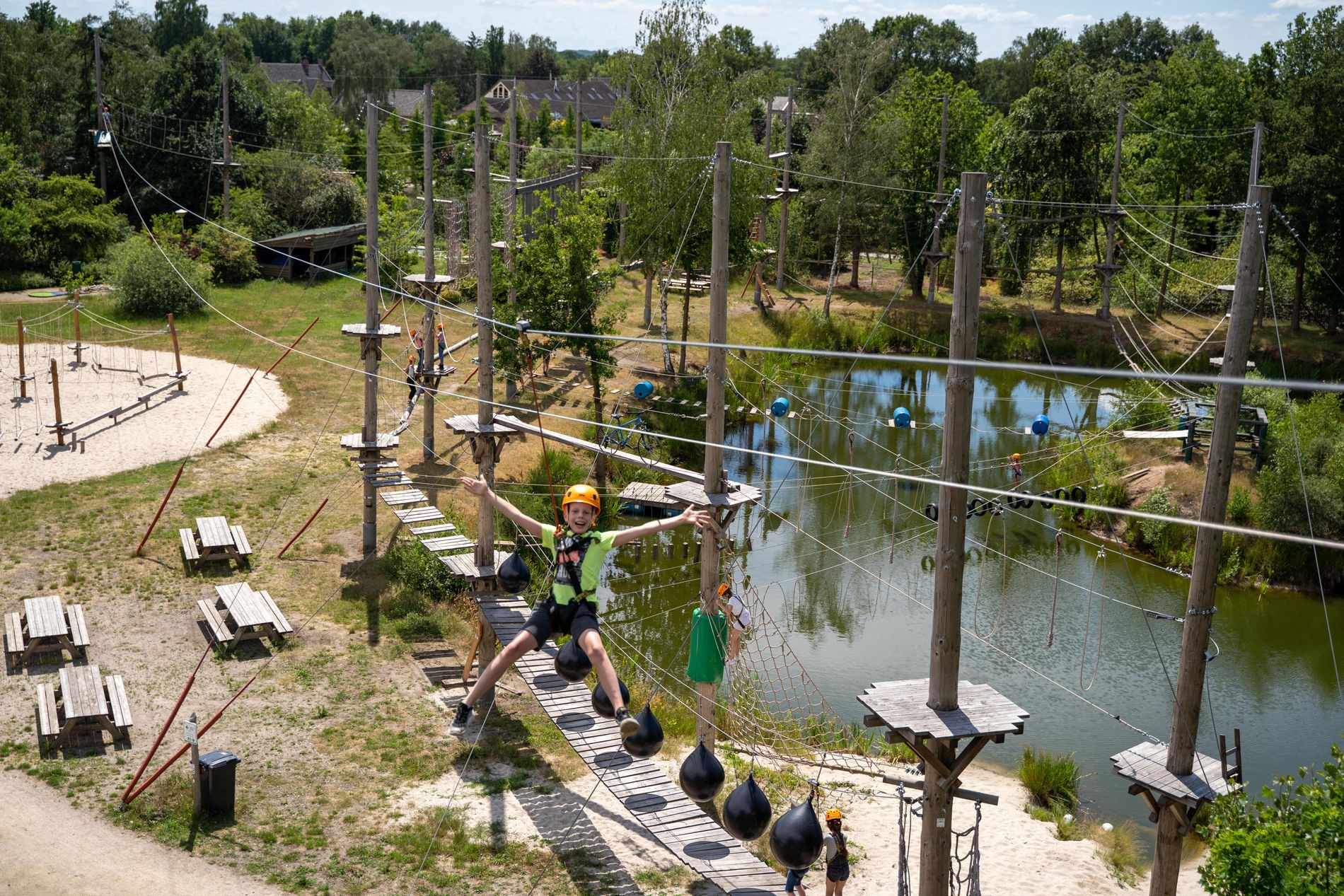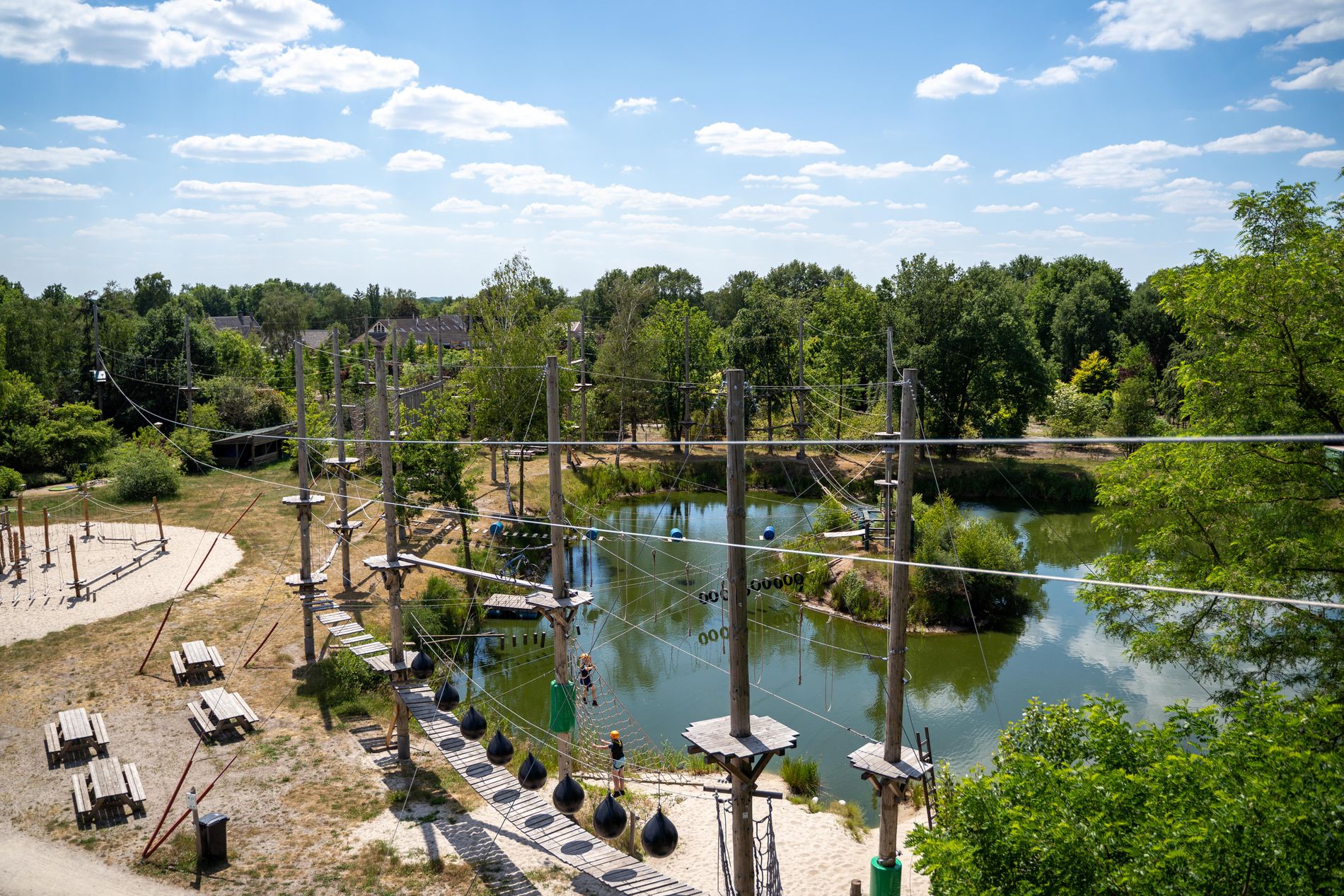 Zwarte route: 110 meter lange zipline op 14 meter hoogte en 13 klimelementen op 7 meter hoogte.
