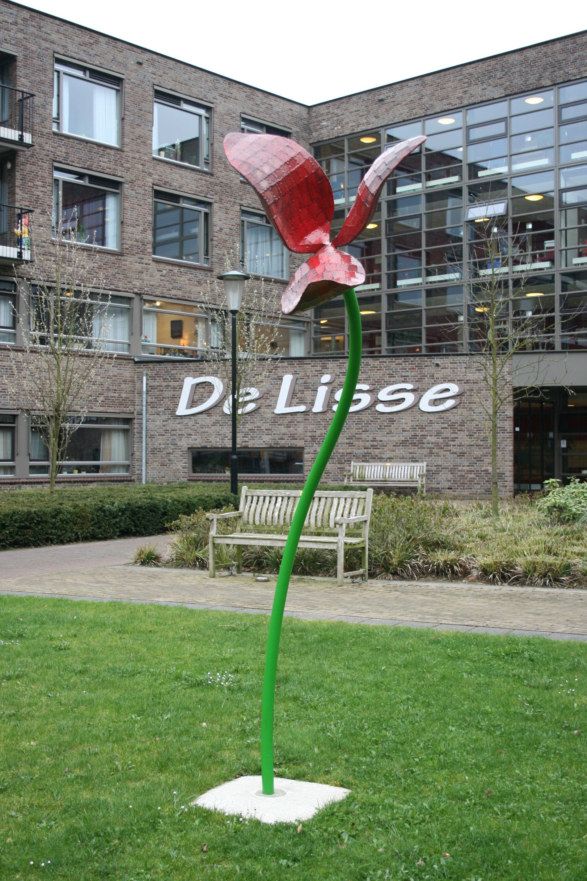 Kunstenaar Bruno Feger werd geïnspireerd door de naam van het gebouw, zorgcentrum ‘De Lisse’. Zo werd het idee geboren voor het kunststof werk ‘De Lis en de Rode Kersen’ dat op de binnenplaats van dit gebouw te vinden is. Het werk fleurt sinds 2007 de binnentuin van dit zorgcentrum op.