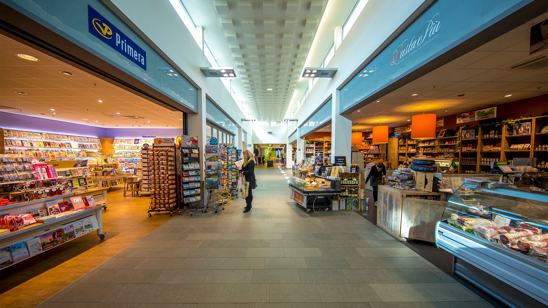 Met een mix van landelijke ketens (Albert Heijn, HEMA, Etos, Primera en Subway) en unieke lokale winkels kun je heerlijk shoppen. Denk aan Pasta e Più waar je voor Italiaanse delicatessen terecht kunt of Deezz Menswear voor herenmode. Bij Pril Geluk shop je zwangerschapsmode, babykleding en cadeautjes, er is zelfs nog een echte schoenmaker aanwezig om je lievelingsschoenen op te lappen. Ook voor een kopje koffie, heerlijke lunch of diner ben je aan het juiste adres. Laat je verrassen door de diversiteit van het winkelcentrum!